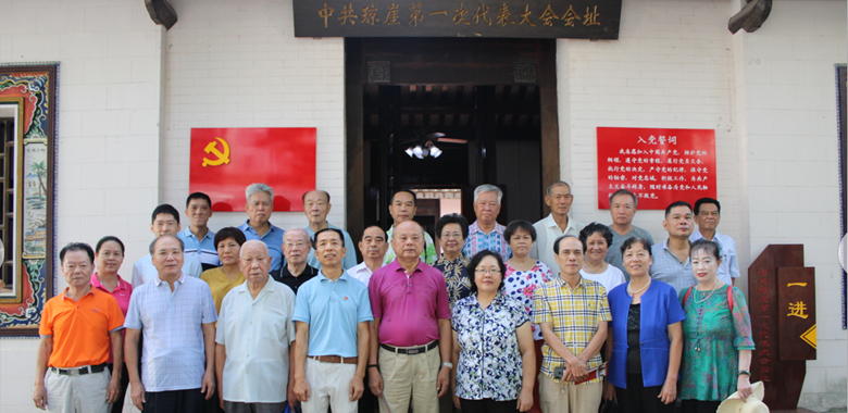 在中共琼崖一大会址正门前,参加活动的老党... |