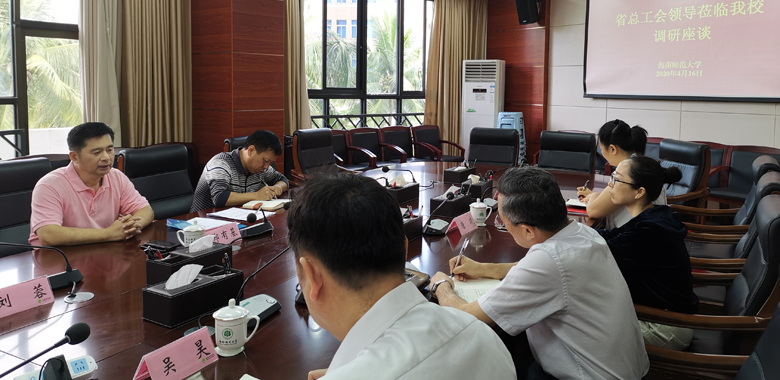 2020年4月16日,省总工会一级巡视员、省教科文卫邮电产业工会主席郑有基一行3人到海南师范大学、海南省电影有限公司、中国邮政集团海口市分公司等基层单位调研指导城市困难职工解困脱困工作。