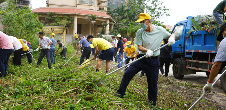 陆志远率省总工会志愿者服务队深入岭下社区开展“爱国、爱海南、爱家乡、爱家庭”卫生健康大行动周末卫生大扫除活动
