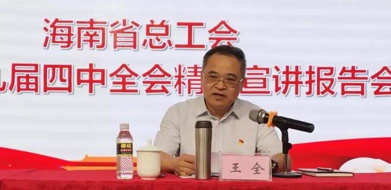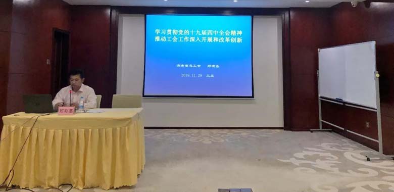 为深入推动全省工会系统学习贯彻落实党的十九届四中全会精神,11月27日至28日,省总工会党组书记、常务副主席王全先后到澄迈、洋浦给基层工会干部宣讲党的十九届四中全会精神。