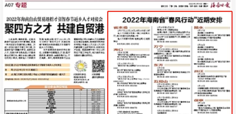 2022年海南省“春风行动”近期安排来啦!海南省总工会海南省总工会微信号hnszgh功能介绍参与国家与社会事务管理,参与企业事业单位民主管理;维护职工合法权益,维护党的执政地位和执政基础;引导职工群众参加建设和改革,完成经济和社会发展任务;开展职工思想政治教育和文化技术教育。收录于话题省本级2月17日、22日、24日,8时30分至12时省人力资源开发局一楼公共招聘大厅,海口市美兰区和邦路3号省人力资源开发局(省就业局)公益招聘会联... |