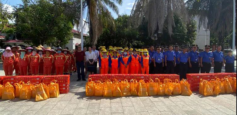 为切实做好疫情防控常态化下职工安全生产和夏季防暑降温工作,根据三亚市总工会《关于开展2020年“送清凉”维权关爱活动的通知》(三工发﹝2020﹞23号)文件要求,6月9日上午,海棠区总工会在“海棠花开”项目二期工地开展“送清凉”活动。区人大常委会副主任、区总工会主席黄锐,区总工会常务副主席吴若波,华泓(海南)投资有限公司董事长、总经理张永便,副总经理吕修出席启动仪式。