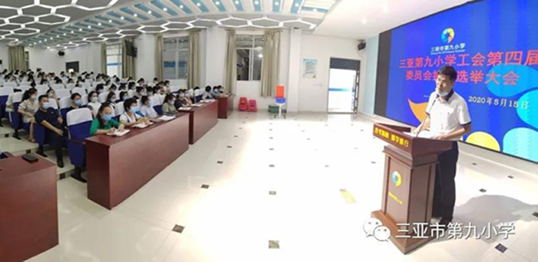 5月15日下午,三亚市第九小学全体教职工在多媒体教室召开三亚市第九小学工会第四届委员会换届选举大会。大会由陈世瑜主任主持。