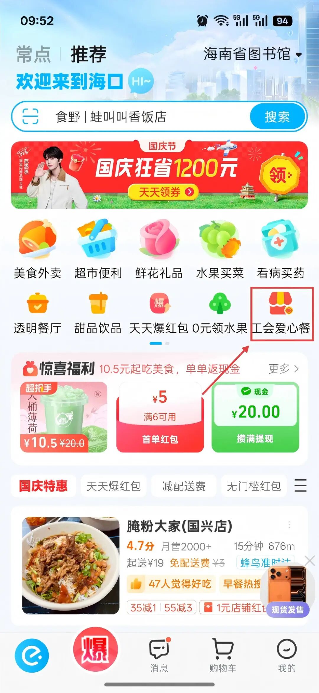 1.用户需提前登录“饿了么”APP或小程序并完成注册(必须使用“海南工会云APP”登录手机号码,否则无法参与活动),参加活动时须使用最新版本,用户需打开参与活动设备的GPS才能参与活动,领取工会爱心餐红包,领券后可在“饿了么APP-我的-红包卡券”中查看优惠券使用范围及有效时间等,优惠券一经发放成功,不退不补。