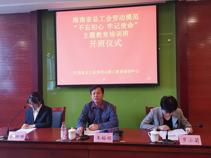 2019年11月3日至9日海南省总工会劳动模范“不忘初心·牢记使命”主题教育培训班在江西省井冈山职工教育培训中心成功举办。海南省总工会党组成员、副主席王裕明,江西省井冈山职工教育培训中心副主任罗小莉出席开班仪式并讲话。