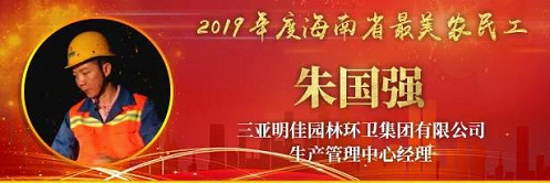 他出身四川大山的贫穷家庭,他将“不怕苦、不怕脏、不怕累”的精神从家乡带到了三亚,他从一线的环卫工人成长为公司生产管理中心的经理。他叫朱国强,在当上公司的经理后,每年从家乡带出50多名村民到三亚做环卫工,解决了贫困家庭的就业问题,他们一道为美丽三亚出力添彩。朱国强用实际行动做到了“脏我一人,清洁万家;累我一人,幸福千家。”
