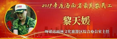 “用胸前的党旗红,润泽身上的雨林绿。”呀诺达的“微笑天使”黎天媛在景区做讲解员期间,热情服务,帮游客所需,全程陪同一些没有家人陪同的老人和帮助一些行动不便的游客,是常有的事情。她担任景区综合办公室主任后,发挥“旅游助扶贫”的带动作用,急村民所急,为村民解决就业、农产品销售等问题。黎天媛以一个党员的责任和爱心感动着呀诺达景区的雨林,感动了黎苗乡村的雨林。