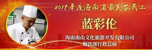 蓝彩伦说,他的一生只想做一个厨子。几十年来,蓝彩伦身体力行、知行合一,在三亚南山“私房菜”馆里,他注重食品安全的第一原则,从未出现过食物中毒事件;他倡导“低碳厨房”,制定标准生产流程,切实降低能耗。他把做菜当做艺术创作,每一盘菜从厨房端出时是一道艺术作品,呈上餐桌时成了旅客的精神食粮。