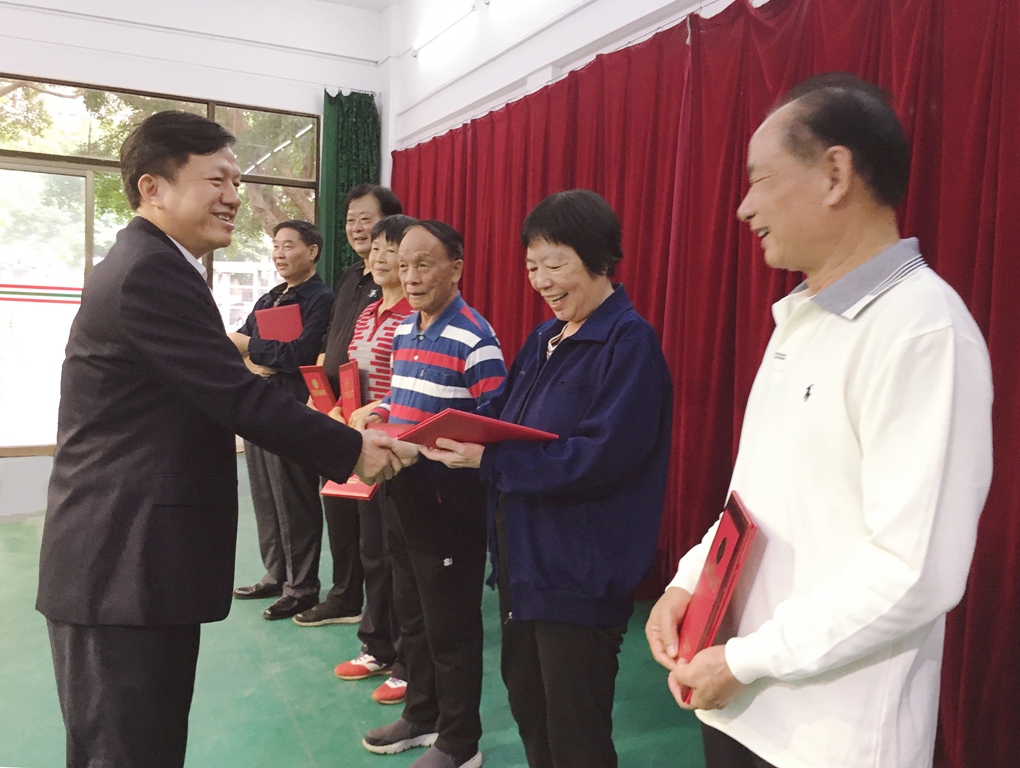 省总工会党组成员、副主席、经费审查委员会主任、机关党委书记王裕明莅临比赛现场,代表省总工会对老同志们致以诚挚的问候,希望他们坚持体育锻炼,拥有健康的体魄,拥有幸福的晚年生活。并与省老年人体育协会常务顾问徐天芬一道,为获奖者颁奖。