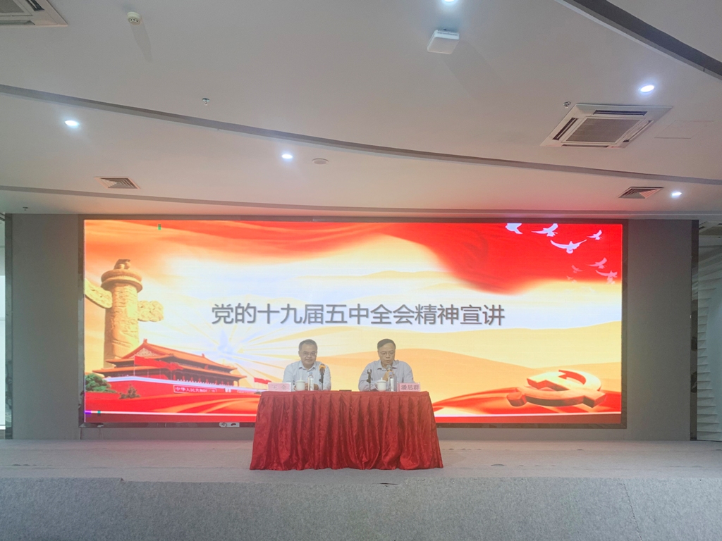 为深入学习宣传贯彻党的十九届五中全会精神,按照省委和全总的统一部署,11月24日,省总工会党组书记、常务副主席王全到澄迈县海南生态软件园综合展示体验中心宣讲党的十九届五中全会精神,澄迈县人大常委会副主任、县总工会主席潘思群主持宣讲会。