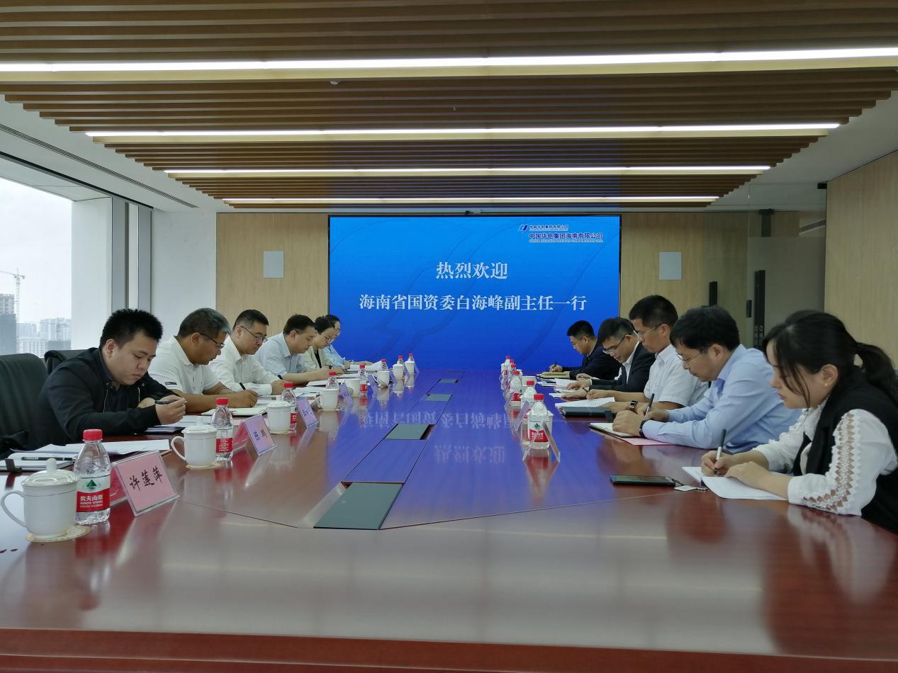 白海峰副主任对公司的担当作为表示赞赏,对公司取得的成绩表示肯定,对公司未来在琼布局表示支持。白海峰副主任表示,受省国资委马咏华主任委托,带领省国资委相关部门上门服务,为驻琼央企排忧解难。白海峰副主任指出,公司政治站位高、起点高、行动快、落实好,是央企落地海南的良好示范。白海峰副主任希望,公司与省国资委党建、业务部门加强交流合作,共同做好党组织属地管理工作、党史学习教育活动,以高质量党建促进企业高质量发展;结合资金、技术、人才优势,用足用好自贸港政策,与海南省属企业加强合作,实现优势互补、合作共赢,为海南自由贸易港建设做出更大贡献。