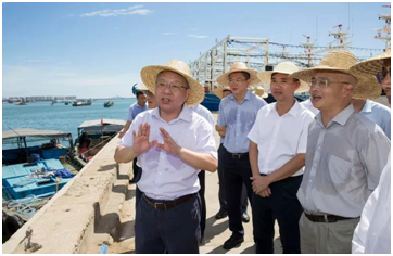 沈晓明一行顶着炎炎烈日先后前往儋州白马井中心渔港、新州镇英进村,考察白马井中心渔港建设,了解全省中心渔港建设规划和省级白蝶贝保护区情况,实地检查近海养殖清退整改工作。随后,在洋浦召开工作会,听取省直有关部门和部分沿海市县关于中央环保督察指出的近海养殖清退整改任务落实和渔港建设情况。