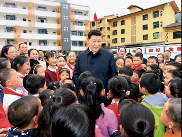 2019年4月15日至17日,中共中央总书记、国家主席、中央军委主席习近平在重庆考察,并主持召开解决“两不愁三保障”突出问题座谈会。这是4月15日下午,习近平在石柱土家族自治县中益乡小学同师生亲切交谈,了解义务教育保障情况。新华社记者