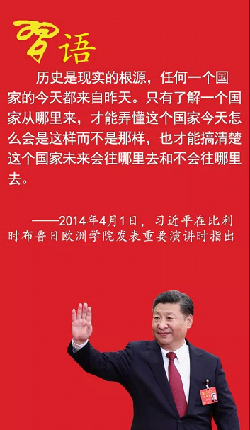 中国革命历史是最好的营养剂,能增加正能量 历史是最好的教科书。对我们共产党人来说,中国革命历史是最好的营养剂。多重温我们党领导人民进行革命的伟大历史,心中就会增添很多正能量。 ——2013年7月11日,习近平在河北平山县西柏坡考察时强调
