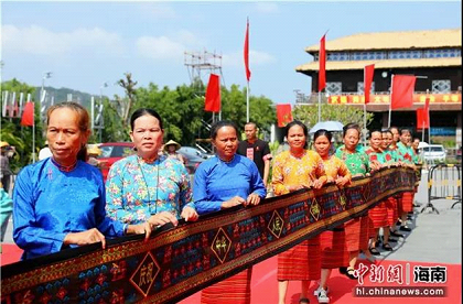 9月20日,庆祝新中国成立70周年暨“中国梦•黎家情”新时代黎锦长卷献礼活动在陵水黎族自治县椰田古寨黎苗文化旅游区举行。