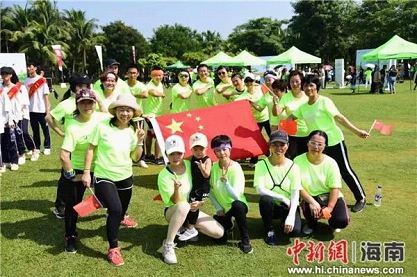 9月21日上午,海口湾畔万绿园,来自海口社会各界的4000多名健康跑爱好者高唱《歌唱祖国》,以奔跑方式庆祝新中国成立70周年。