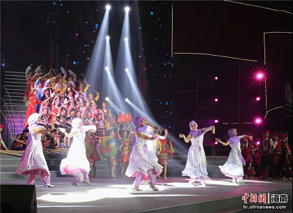 9月23日晚,“不忘初心·牢记使命、奋进70年·放歌新时代——庆祝新中国成立70周年”民族团结大合唱活动,在海南槟榔谷黎苗文化旅游区《槟榔·古韵》剧场举行。