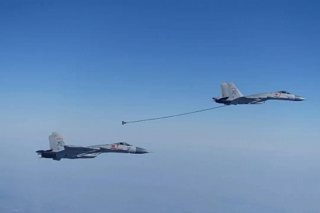 日前,媒体还发布了一段歼-15舰载战斗机在空中加油的视频。在视频中,两架“飞鲨”成功进行了“伙伴加油”。
