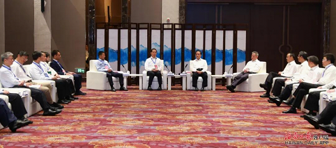 6月13日,海南自由贸易港重点项目集中签约仪式在海口举行。图为签约前,省委书记刘赐贵,省委副书记、省长沈晓明等领导会见签约代表。海南日报记者