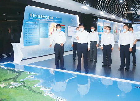 2020年7月22日至24日,中共中央总书记、国家主席、中央军委主席习近平在吉林省考察。这是7月23日下午,习近平考察长春新区规划展览馆,了解新区规划建设情况。 新华社记者