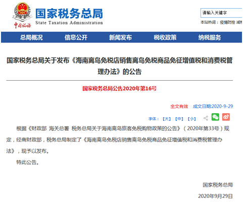 国家税务总局发布海南离岛免税重要公告