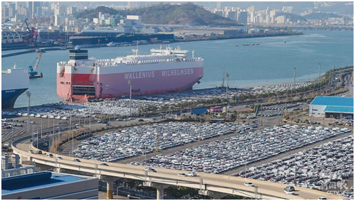 △今年9月,韩国在疫情暴发后首次实现出口正增长,同比增加7.6%。这是全球最大的汽车工厂——韩国蔚山汽车厂,拥有出口码头。