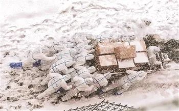 1月6日,大连海洋大学因疫情封校,志愿者推着三轮车上坡,将物资送往学生宿舍。新华社发(大连海洋大学供图)