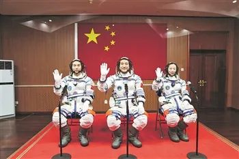 10月15日晚,神舟十三号载人飞行任务航天员乘组出征仪式举行。新华社记者 李刚 摄