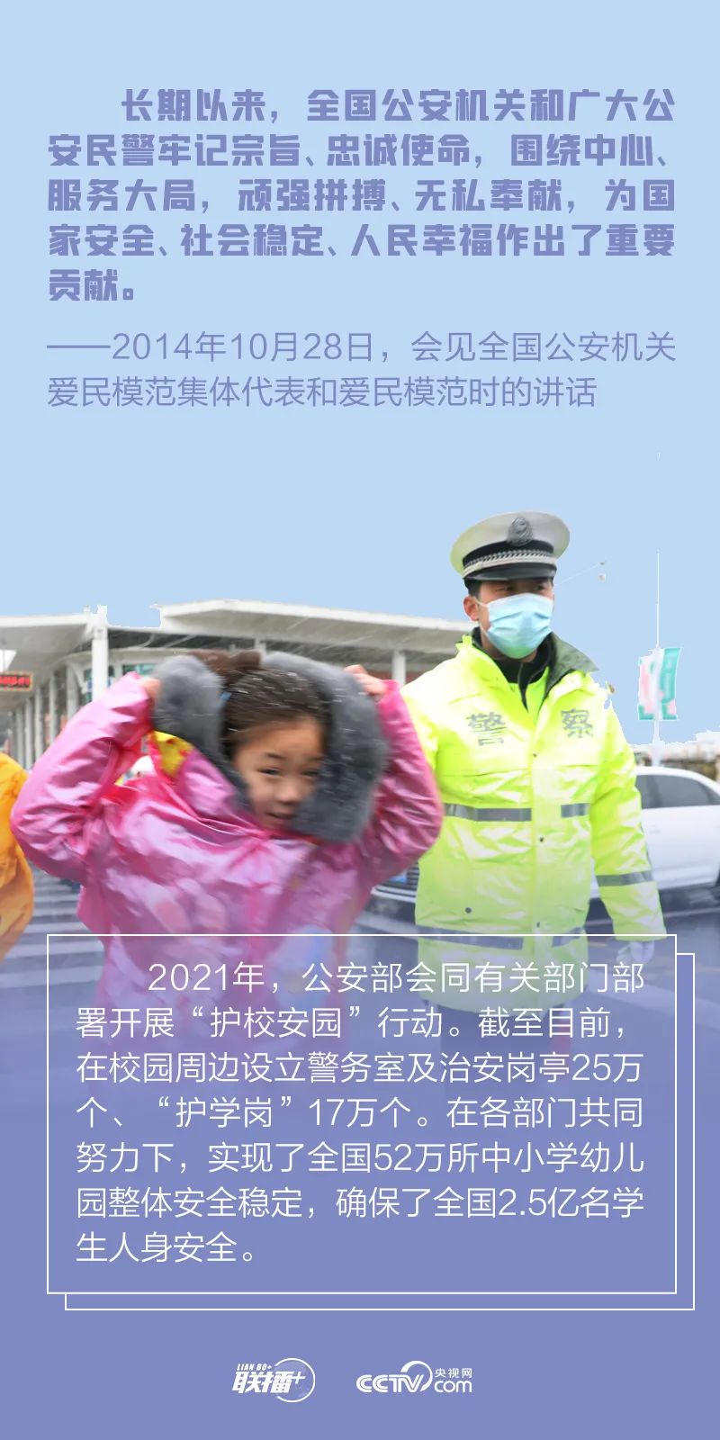 人民警察队伍是一支有着光荣传统和优良作风的队伍,也是和平年代牺牲最多、奉献最大的队伍。一直以来,习近平总书记非常关心这一群体,高度重视警察工作,新春考察时看望慰问坚守岗位一线的公安干警,会见全国公安机关爱民模范集体代表和爱民模范时向他们致以崇高敬意,向中国人民警察队伍授旗时致训词......一言一行,一字一句,浸润着总书记的关爱之情。