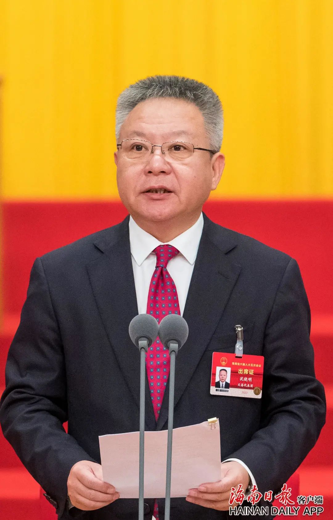 2022年1月21日,海南省六届人大五次会议在省人大会堂开幕。大会主席团常务主席、本次会议执行主席沈晓明主持大会。海南日报记者宋国强 摄