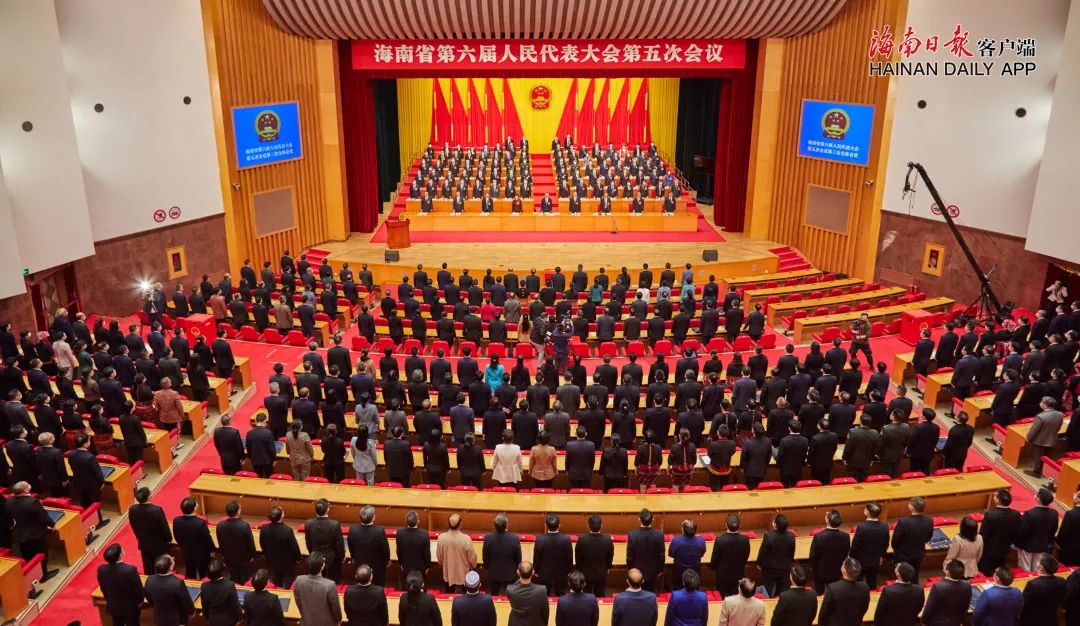 海南省第六届人民代表大会第五次会议圆满完成各项议程,1月24日下午在省人大会堂胜利闭幕。大会号召,全省上下要更加紧密地团结在以习近平同志为核心的党中央周围,乘势而上、拼搏实干,努力把海南自由贸易港建设推上不可逆转的发展轨道,以优异成绩迎接党的二十大和省第八次党代会胜利召开。