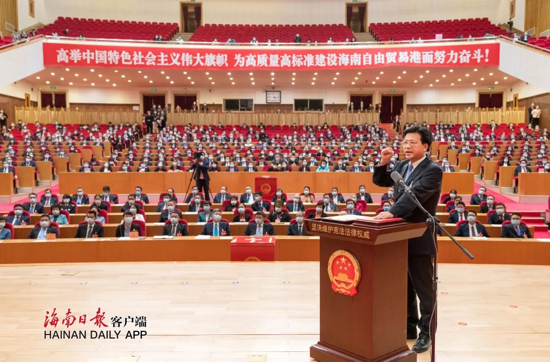 各项议程结束后,省委书记、省人大常委会主任沈晓明发表讲话。他指出,过去的一年,在以习近平同志为核心的党中央坚强领导下,海南自由贸易港建设蓬勃展开,多项主要经济指标增速历史性地走在全国前列,全省呈现发展方向坚定、发展质量提升、发展环境优化、发展热情高涨的生动局面。