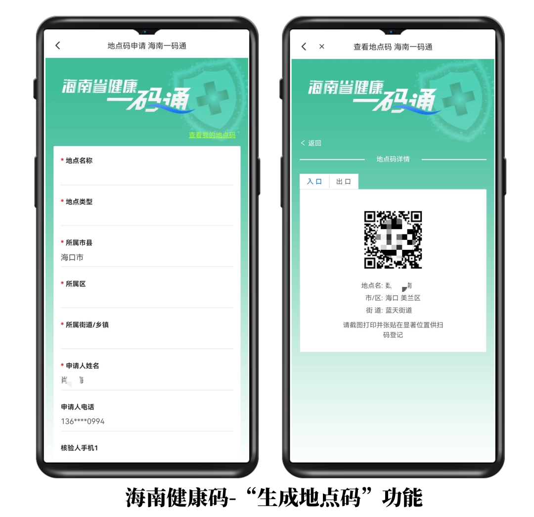 重点场所和公共交通工具管理者或经营业主通过登录“海南健康码”,点击“海南省健康一码通”图标,选择“生成地点码”进入信息填写页面(详见附件),提交后形成二维码并进行打印,张贴于各重点场所入口和出口、公共交通工具车身或车内的醒目位置,并派专人引导、监督出入重点场所人员、乘坐公共交通工具的人员扫“地点码”。