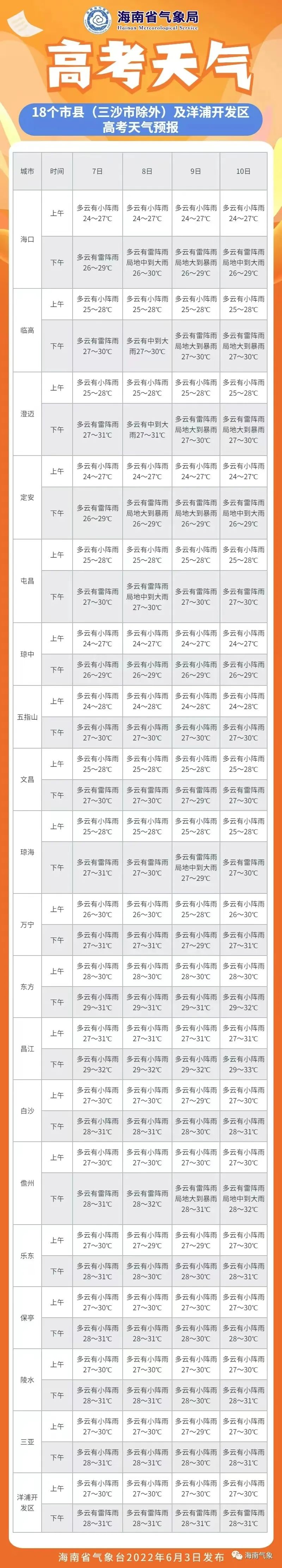 东部,多云,局地午后有雷阵雨,最低气温25-27度,最高气温33-35度