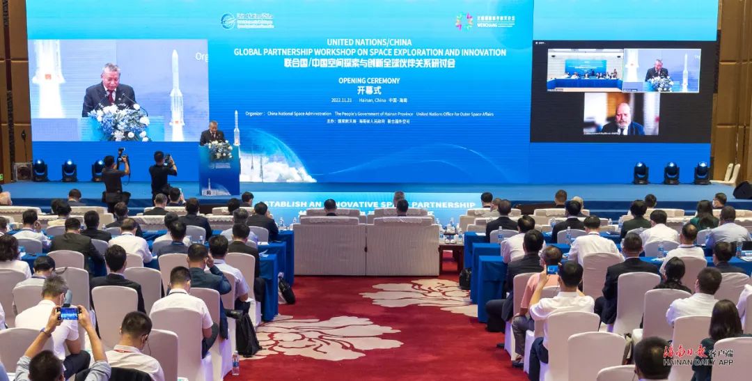 联合国/中国空间探索与创新全球伙伴关系研讨会由国家航天局、海南省人民政府、联合国外空司主办,主题为“构建新型空间探索伙伴关系”,来自全球25个航天机构和82个国家的科研机构、大学、企业和学生代表参与研讨。