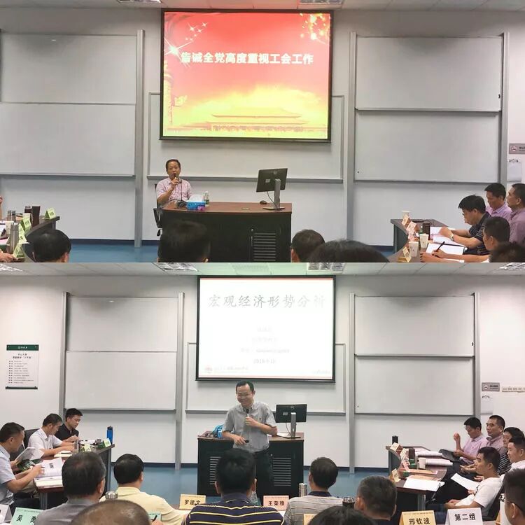 本次培训班为期5天,邀请了广东高校的教授和知名理论专家就中国经济政策形势分析热点解读;新常态、新形势下的工会工作的思路与方法;工会干部的领导与管理素养;不忘初心,牢记使命——弘扬红船精神,走在时代前列;互联网+大数据与工会工作创新;劳动关系、工会维权及案例分析;职代会、工会与企业民主管理实务操作等内容进行专题培训。