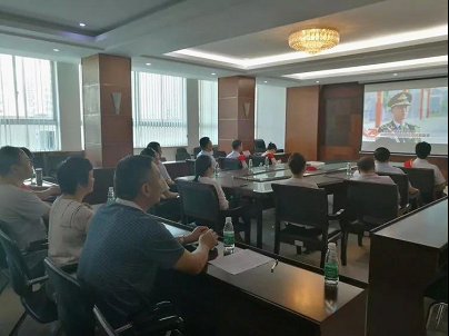 在收看直播时,全体党员不时伴随直播清唱《我和我的祖国》《我爱你中国》等爱国歌曲,共同起立合唱国歌,同全国劳模、先进工作者分享奋斗故事和成长历程,通过直播感受祖国70年的丰硕成就,通过雄壮的军歌和军威感悟祖国的伟大。