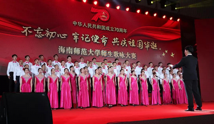 2019年9月29日19:00,我校在黄华康体育馆隆重举办主题为“不忘初心、牢记使命,共庆祖国华诞”师生歌咏大赛,庆祝中华人民共和国成立70周年。