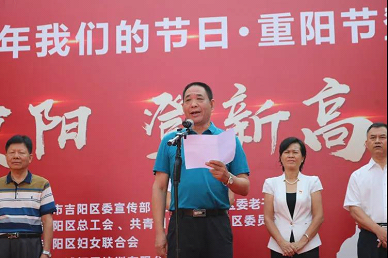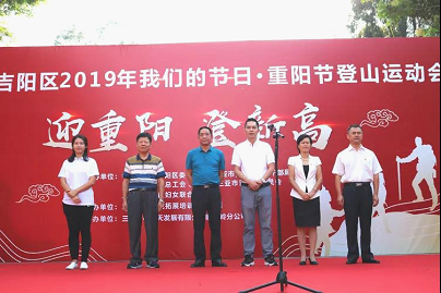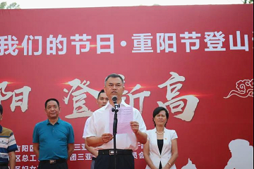 在重阳佳节即将到来之际,又适逢新中国成立70周年,为深入贯彻十九大精神,实现体育强国梦,着力营造和谐、欢乐、祥和的节日氛围。吉阳区希望能够通过创新的活动载体、丰富的活动内容、扎实的组织工作,从而达到活跃大家精神文化生活,进一步振奋精神,凝聚力量的目的!今天的“迎重阳”登山运动会,不仅形式创新,更符合了重阳节“登高望远”这一传统习俗。与此同时,更希望大家都能够不忘初心,牢记使命,为建设自由贸易区和探索建设自由贸易港作出“吉阳贡献”。