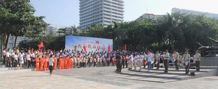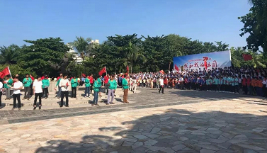 9月17日上午,三亚市总工会在大东海广场开展“我和我的祖国”快闪活动。500余名来自三亚不同行业的职工代表、劳动模范齐聚这里,他们手里挥舞着国旗,集体唱起《我和我的祖国》,为新中国成立70周年献礼。