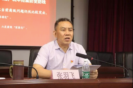 张羽飞主席结合身边、省市乃至全国典型案例分析原因教训,结合当前国际国内形势讲明制度优势,结合故事典籍引导党员慎独、慎初。