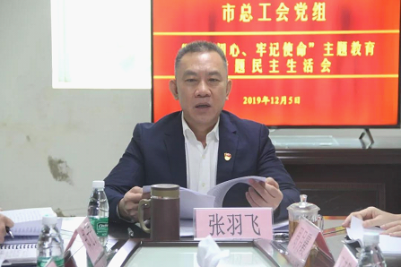 最后,张羽飞同志代表市总工会党组班子作表态发言。张羽飞指出,市总工会党组班子要以这次民主生活会为新起点,不断增强践行初心使命的自觉,持之以恒推动自我净化、自我完善、自我提高,努力把主题教育成效转化为班子建设实效、工会自身建设实效、工作推进实效。