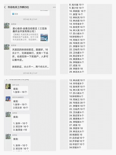 在党员干部带动下,市总机关36名党员干部职工踊跃下单,累计购买哈密瓜332个,共计1660元。