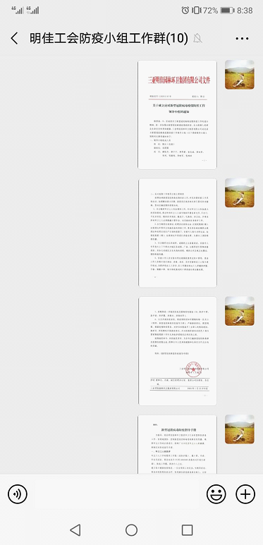 组建明佳工会防疫工作小组工作群传达部署疫情防控工作
