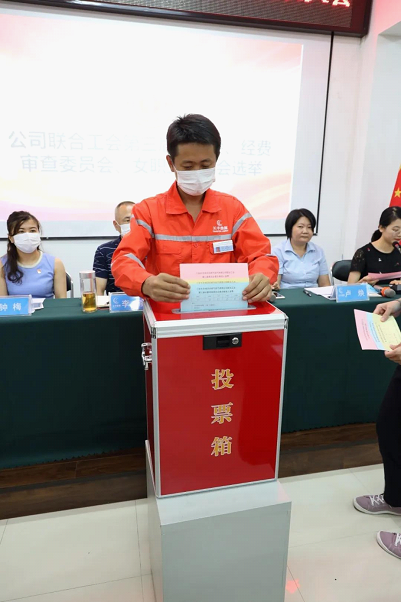 会议选举流程严格按照选举办法进行,与会的44名工会会员代表以无记名投票的方式选举产生了公司新一届工会委员会委员、经费审查委员会委员、女职工委员会委员。步久珣、卢焕、王珍、李晓、凌鹏飞、陈慧、裴书瑶、曾春芳、王延福9名同志当选为公司联合工会第三届委员会委员。卢焕、陈娜、王延福、王龙恺4名同志当选为公司联合工会第三届经费审查委员会委员。王珍、曾春芳、卢俊璇3名同志当选为公司联合工会第三届女职工委员会委员。步久珣同志当选为工会委员会主席,卢焕同志当选为工会副主席兼经费审查委员会主任,王珍同志当选为女职工委员会主任。