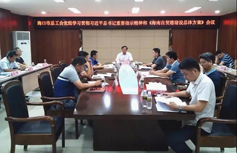 海口市总工会党组学习贯彻习近平总书记重要指示精神和《海南自由贸港建设总体方案》