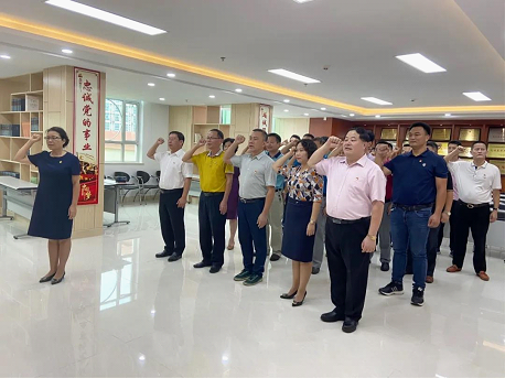 在中国共产党成立99周年之际,为重温党的奋斗历程,增强机关党员爱党爱国意识,不忘入党初心,爱岗敬业,无私奉献,7月1日下午,三亚市总工会在市总工会3楼党建室,组织全体党员隆重举行重温入党誓词活动。市人大常委会副主任,市总工会党组书记、主席张羽飞同志主持活动并讲话。市总工会党组副书记、常务副主席周月霞同志领誓。