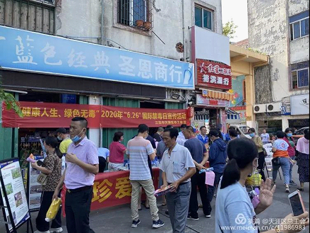 为贯彻落实市总工会《关于开展2020年全民禁毒宣传月主题活动的通知》和区禁毒委员会印发《2020年全民禁毒宣传月主题方案的通知》(天禁委﹝2020﹞6号)文件要求,天涯区总工会于6月30日上午,在新建社区老鸿港市场开展“健康人生·绿色无毒”宣传活动。为助力海南自由贸易区建设,营造新一轮禁毒大会战氛围,加大禁毒宣传力度,倡导健康、绿色、阳光、文明的生活方式,营造全民禁毒宣传月。