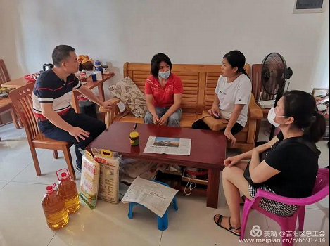 根据三亚市总工会《关于印发<三亚市工会2020年城市困难职工解困脱困工作方案>的通知》(三工发〔2020〕19号)精神,为做好困难职工帮扶工作,确保在2020年更好地完成困难职工脱困解困工作。6月22日至6月29日,吉阳区总工会副主席邓文旭带领区总工会帮扶联系人、基层工会责任人一行到19户困难职工家里进行走访慰问,并送上米、油等慰问品。每到一户,区总工会结对帮扶联系人都与困难职工亲切交谈,详细了解困难职工目前的工作和生活情况,认真倾听了他们的所需、所难、所盼,鼓励他们要树立战胜困难的信心和勇气,用双手创造幸福美好的生活,争取早日脱困。