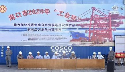 海口市2020年“工会杯”“ 我为加快推进海南自由贸易港建设作贡献”码头工人消防技能竞赛在海口港区隆重举行
